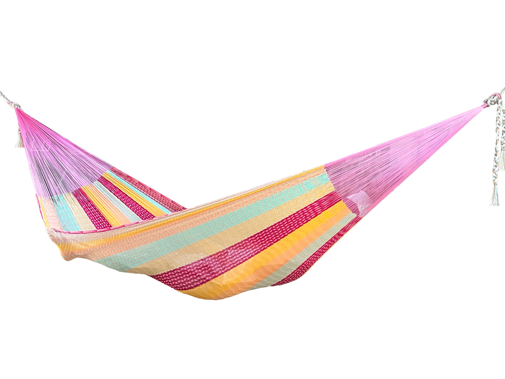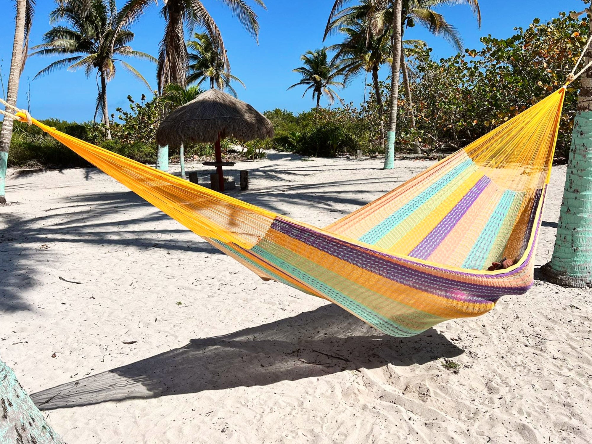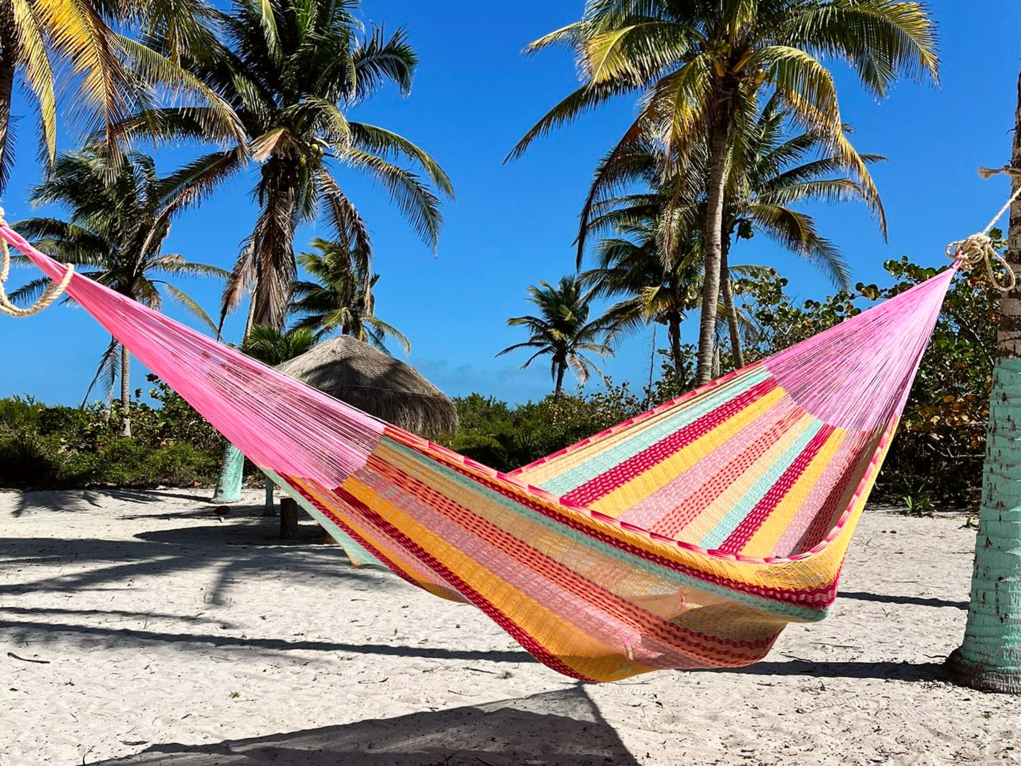 Las hamacas tejidas con Hilo OSO® son consideradas las más finas de Yucatán. Su suavidad incomparable las hace excepcionalmente cómodas, y su brillo natural resalta la belleza de sus colores únicos.